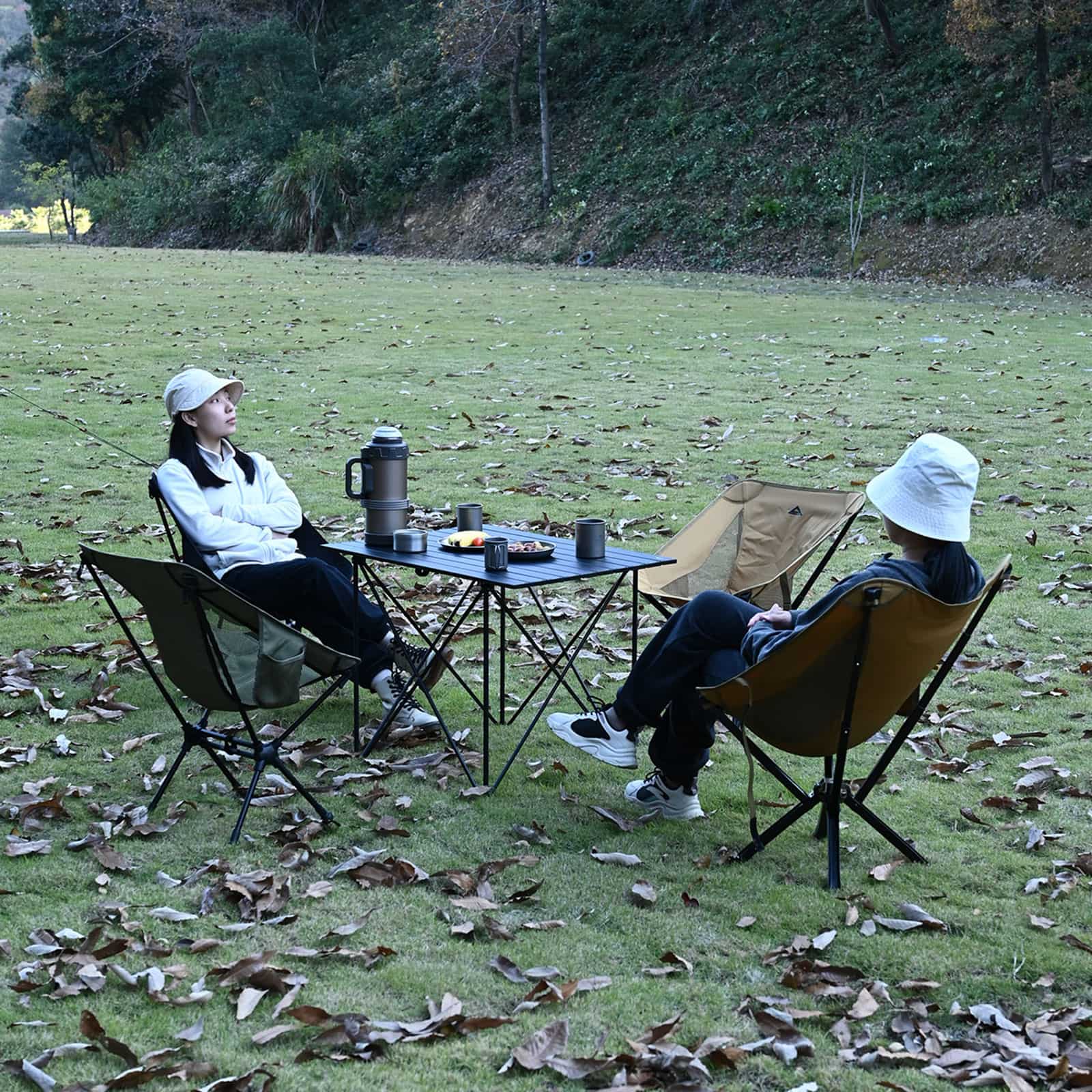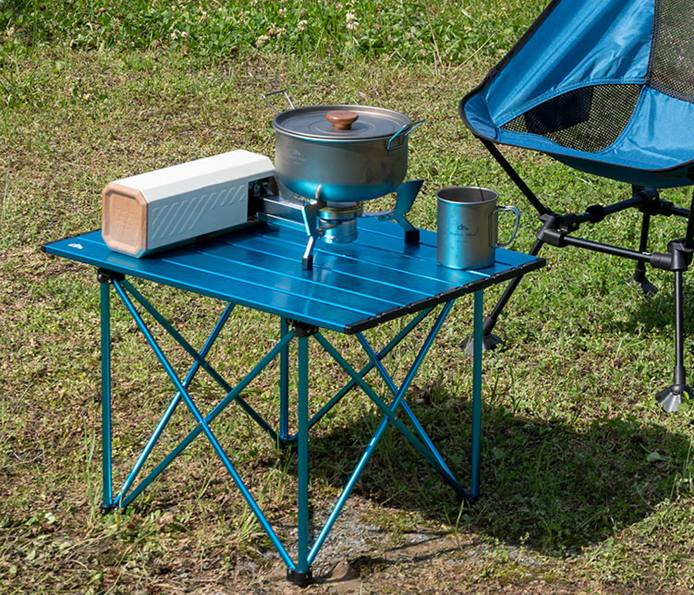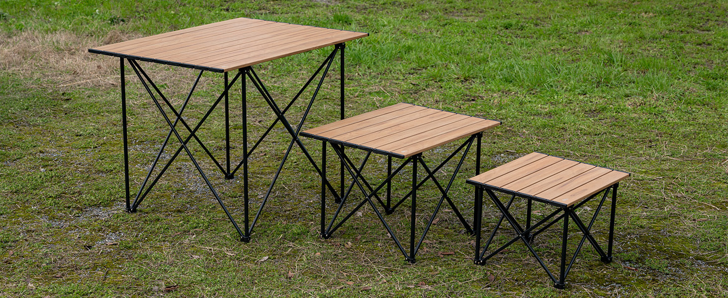 コンパクトで、キャリーバッグが付属しているので、どこへでも簡単に持ち運べます。通常の布製テーブルとは異なり、このテーブルは平らな表面を持っています。耐熱性があり、ストーブを置くことができます。セットアップは非常に簡単で、ベースフレームを開いて天板を取り付けるだけで、数秒でレジャータイムを楽しむことができます。