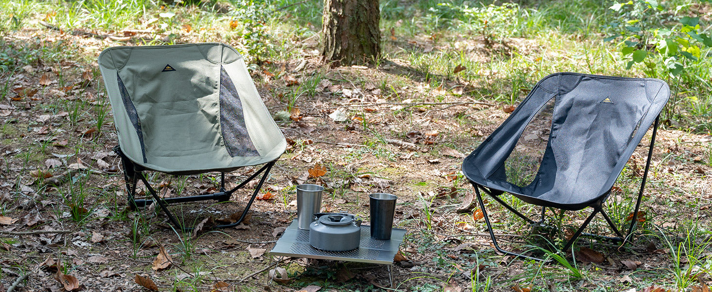 Lower profile to ensure stability; One securing strap to help make the chair more stable, it also helps when fold up; Seat Height 20 cm (7.8 inches); Perfect for backpacking, camping, hiking, canoeing, biking, kayaking, motorcycle travelling, hunting trek, concert party, outdoor picnic, park, BBQ, road trip, adventuring and anyone looking for light travel without the bulk.